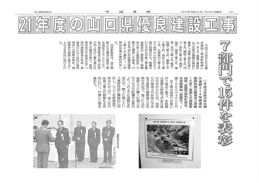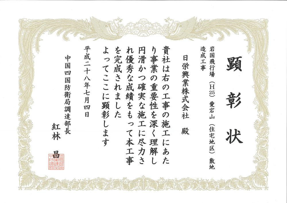 カテゴリー 表彰 平成26年・優秀工事として中国四国防衛局より表彰されました。 投稿者 作成者: act3ad 投稿日 2019年6月20日 平成26年・優秀工事として中国四国防衛局より表彰されました。 へのコメントはまだありません