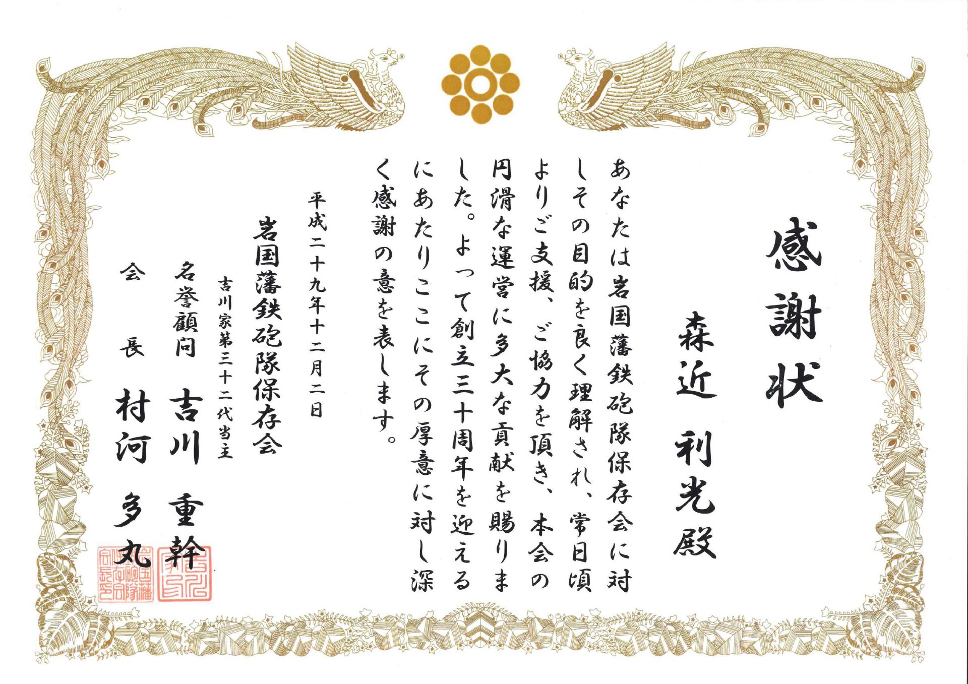 カテゴリー 表彰 岩国藩鉄砲隊保存会より感謝状をいただきました。 投稿者 作成者: act3ad 投稿日 2019年6月20日 岩国藩鉄砲隊保存会より感謝状をいただきました。 へのコメントはまだありません